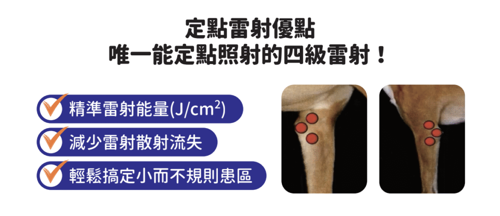 • 由獸醫師根據病灶深度、組織特性與能量需求設定適當參數。