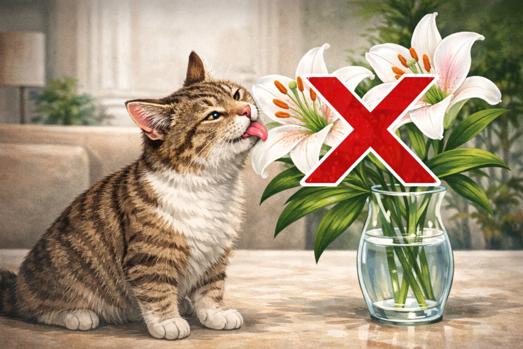 貓咪接觸或舔舐到百合花的 「任何部位」,花瓣、葉子、莖、花粉甚至是插過花的水,